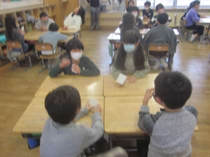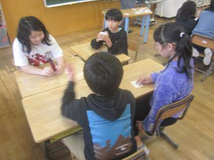 4(3)人グループでカードを使って遊びました。