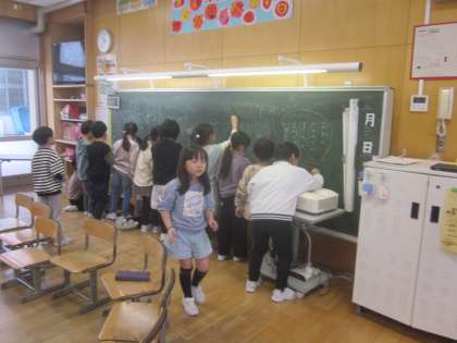 まずはみんなで黒板の飾り付け。