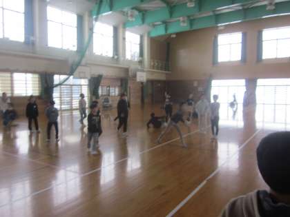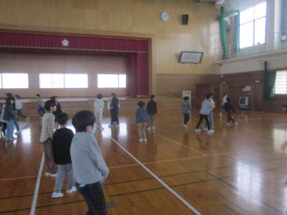 終業式の今日、体育館で4年生がドッヂボールを楽しんでいました。