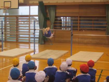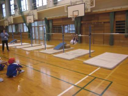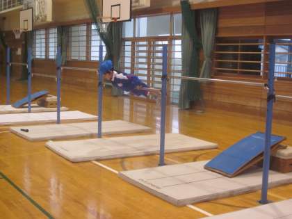「地球まわり、つばめ、前回りおり」に挑戦しています。