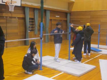 運動委員の子供たちが登校後に鉄棒を設置してくれました。