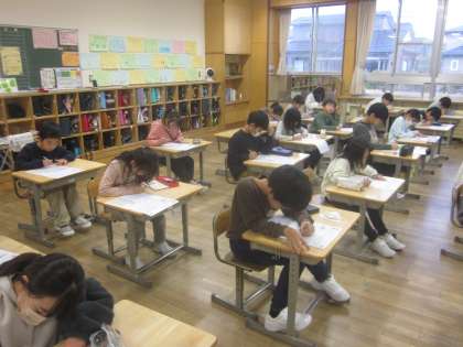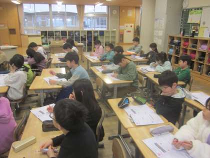 「□を使った式」のテストと復習プリントの直しを行いました。