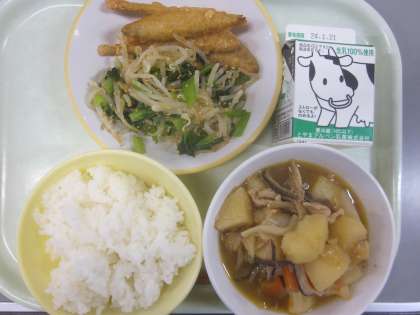 今日の献立は「ご飯、牛乳、わかさぎのフリッター、ごまびたし、豚肉の南蛮煮」でした。