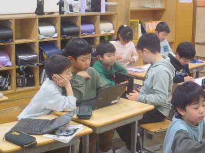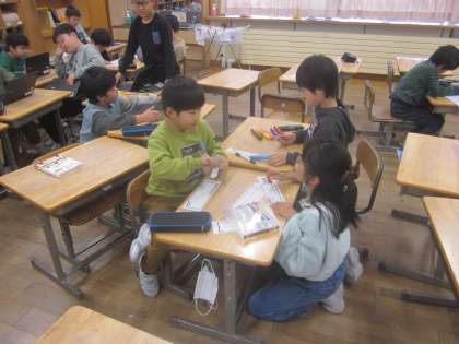 今日は楽しみにしていた係活動の日です。クイズや飾りなどの係に分かれて活動しました。
