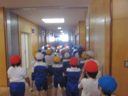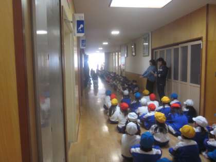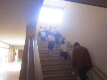 屋上に雪が残っていたため屋上への避難は中止としました。