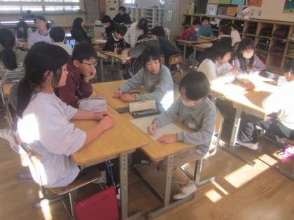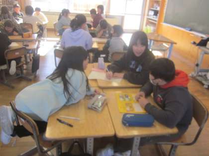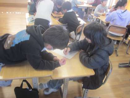 2組はじゃんけん大会の後にお絵かきしりとりをしました。