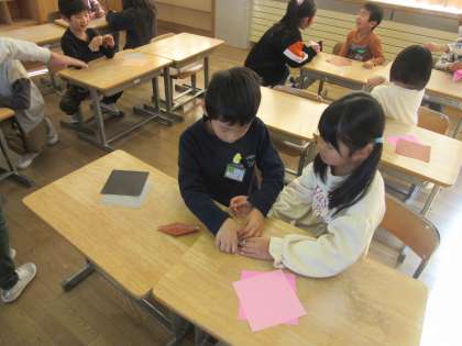 係活動をしました。おりがみ係が、みんなに折り紙を教えたり、友達と協力して係の準備をしたりしました。みんなが楽しめるようにがんばっています。