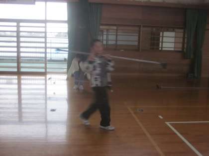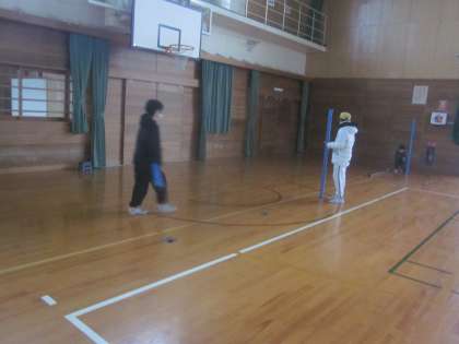 登校した運動委員が鉄棒の準備をしています。