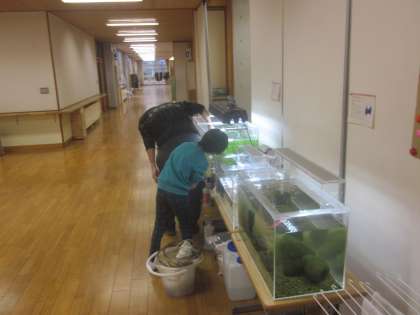 魚の水槽掃除をしました。 魚たちはとても喜んでいました。