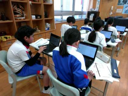 5つの音を使って、旋律づくりの活動をしました。パソコンを使って自分のつくった旋律を聴き、よりよい旋律となるよう一人一人集中して取り組みました。