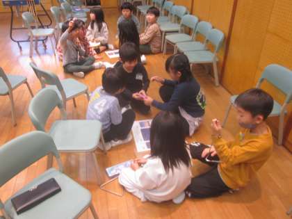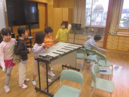 楽器の担当も決まり、グループで合奏中です。