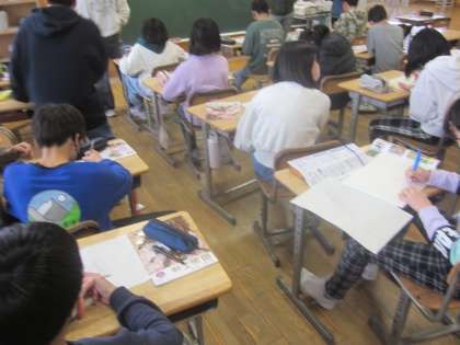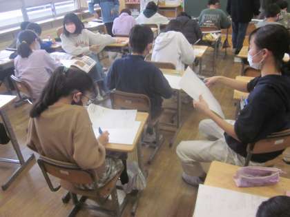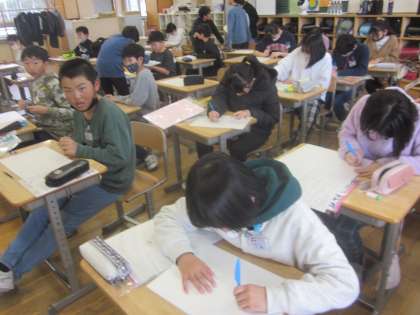 下書きを終えた子供たちは彫り進めています。