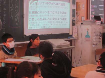 5年生からお願いされた卒業を祝う週間の名前の候補を決めました。