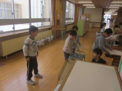 今日の4時間目に1年2組を招待して、おもちゃで遊びました。