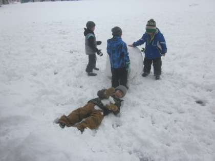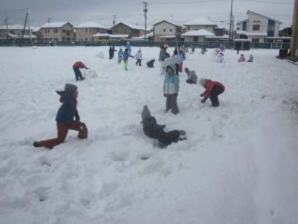 雪だるまをつくったり、雪合戦をしたりと、雪国ならではの学習です。