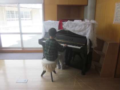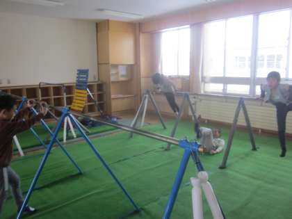 ストリートピアノで演奏している子、鉄棒ランドで鉄棒をしている子、みんな楽しんでいます。