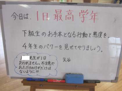 4年生フロアのホワイトボードです。 久々の登場です。 気合いが感じられます。