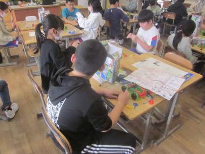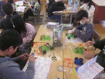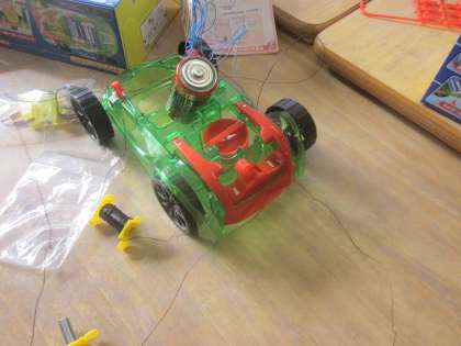 電磁石カーをつくりながら、仕組みを学んでいます。