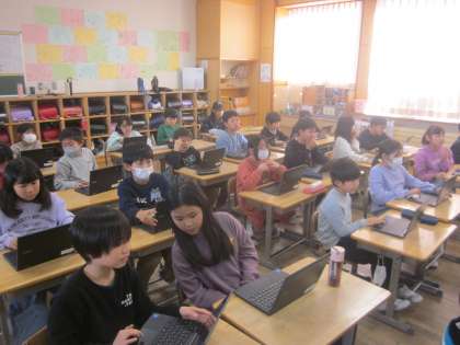 総合的な学習の時間「大広田のキラキラさん」のまとめとして、スライドを作成します。