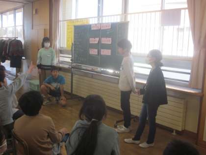 今日は先週、各クラスで話し合った「卒業を祝う習慣で週間ですること」を学年で話し合って決めました。