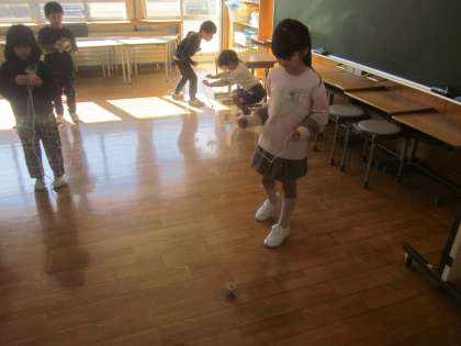 今日は、こまを回しました。