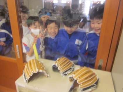 体育帰りの子供たち 「わあー大谷選手のグローブだ!」 「本当に届くんだね!」