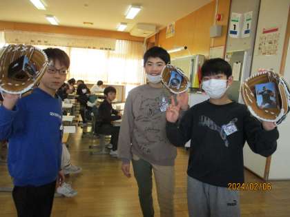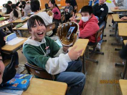 大谷選手からのグローブが6年生フロアに届きました。実際に目にして触ってみると、感激も倍増です。