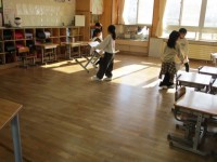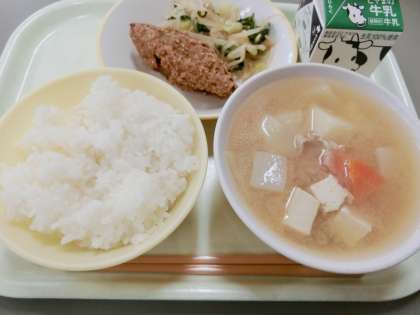 今日の献立は「ご飯、牛乳、魚の利休揚げ、もやしのおひたし、豚汁」でした。魚の利休揚げは、給食室でふきらぎに、ごまたっぷりの衣をつけて揚げてあります。衣がかりっとしていておいしくいただきました。
