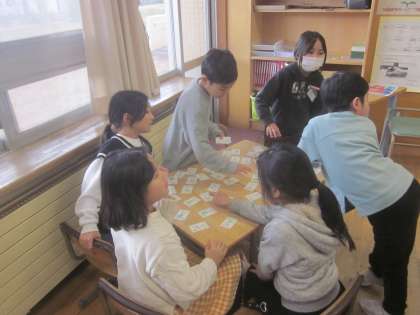 ・カードゲームで遊ぶ子供たち