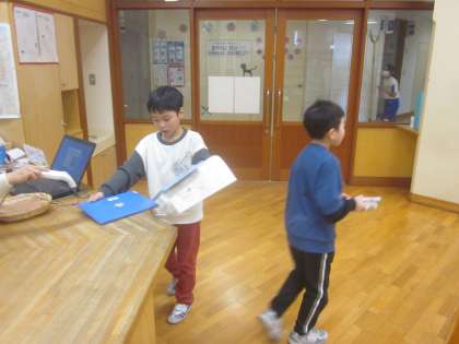 ・図書室で本を借りる子供たち