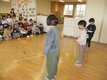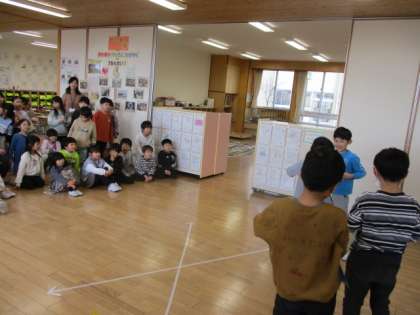 今までたくさん練習してきたけん玉とこまの技を1年生に披露しました。