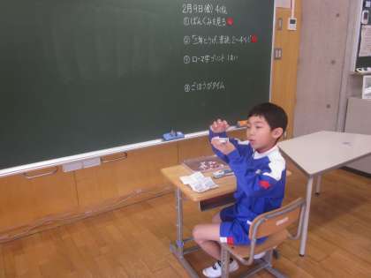 自立活動です。 指先の動きをよくするために小さなブロックを使って作品を仕上げました。