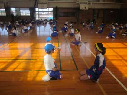 待機場所や跳ぶ場所、回数を数えてくれる友達の確認です。