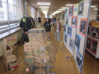 段ボールチャレンジ係です。うまく段ボールを落とせるか…