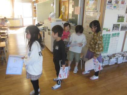 先生に丸を付けてもらうために順番を守って並んでいます。