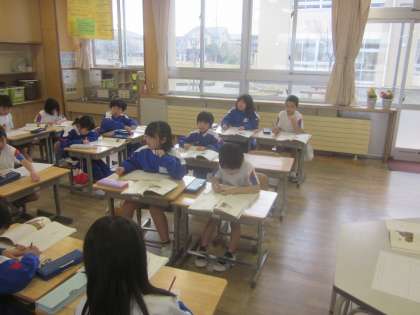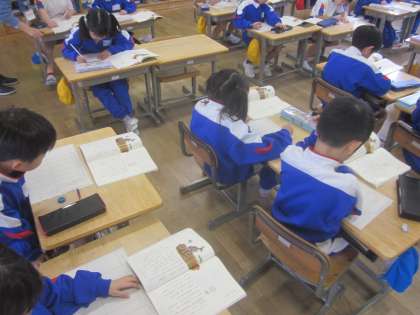 カンガルーの赤ちゃんの特徴についてワークシートにまとめています。