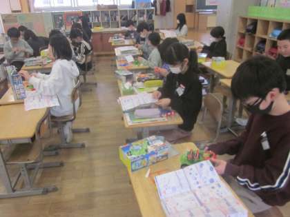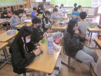 1組は電磁石の学習です。 自動車をつくりながらモーターの仕組みなどを学んでいます。