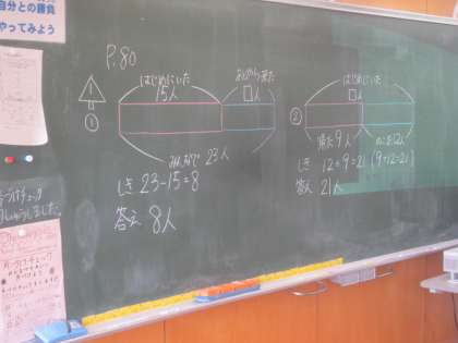「はじめにいました」「あとからきました」といったキーワードになる言葉から立式します。
