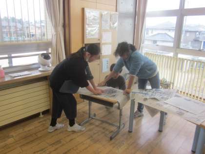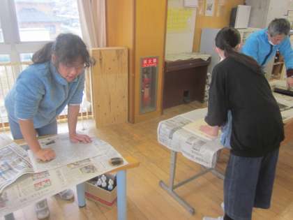 ローラーでインクをつけて、バレンでしっかりとこすります。