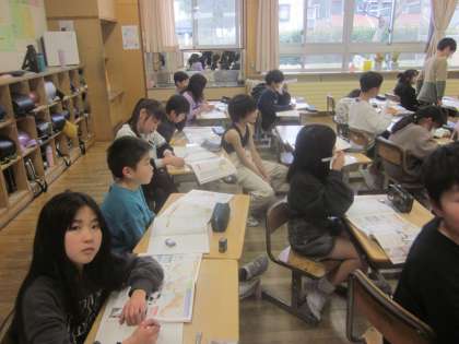富山市の土地の使われ方について、資料を見ながら考えています。
