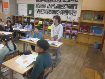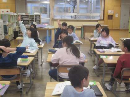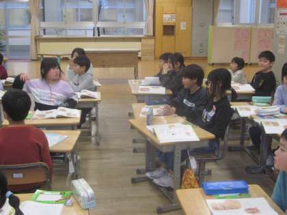 教材文で登場するクマの様子からどのような行動が「あたたかい心」なのか話し合いました。
