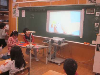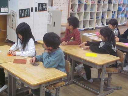 1組は、折り紙係の子供の説明を受け、折り紙をしました。