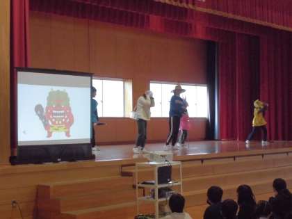 全校で節分集会を行いました。 みんなで協力して鬼を倒します。