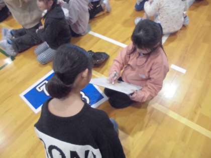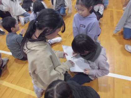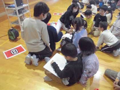 6年生から1年生にバトンが渡りました。6年生は優しく見守っています。