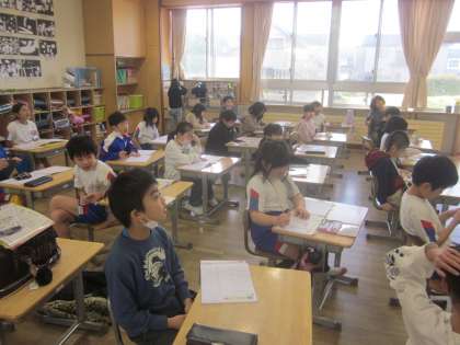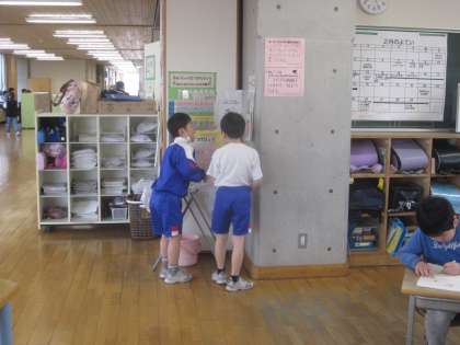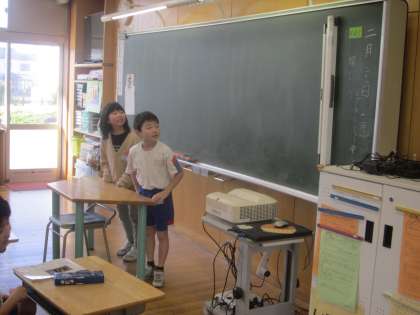 今日の目当ての確認の後は、給食係からの今日の献立発表です。