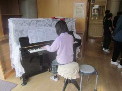 朝の全校の歌の後は、ストリートピアノ付近に集合して、卒業式で歌う「旅立ちの日に」の練習です。