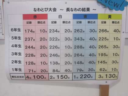 なわとび大会の結果