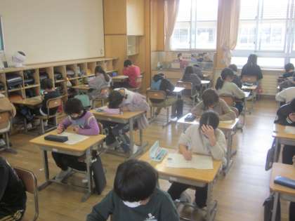 算数のたしかめに取り組んでいます。 集中しています。