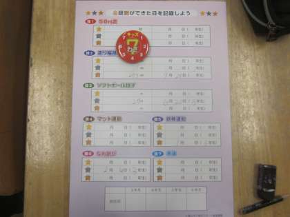 技セブンカードに記録を書き、バッジにシールを貼りました。