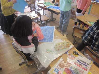 友達と協力して刷っています。